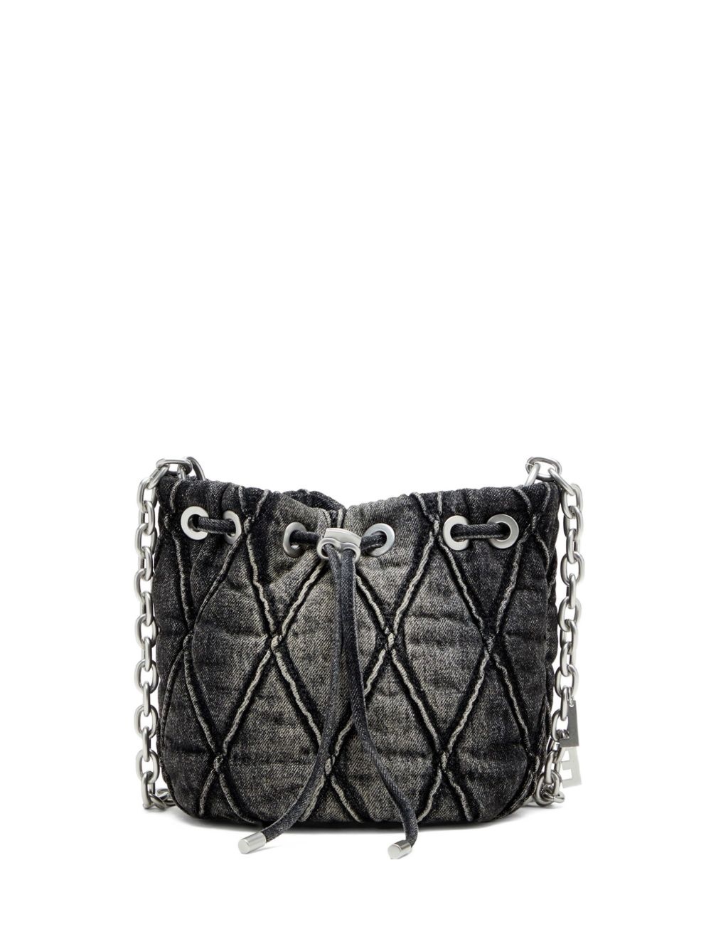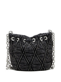 small CHARM-D quilted chain bucket bag Highlights - Dark grey - Diamond quilting - Drawstring closure - Chain shoulder strap - Metal eyelets Imported Composition Outer: Cotton 95%, Polyurethane 5% SIZE & FIT Measurement DEPTH 4.13 in(10.5 cm) HEIGHT 7.48 in(19 cm) WIDTH 8.26 in(21 cm)