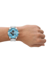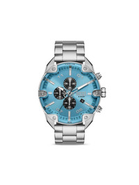 Spiked 49mm Highlights - 49mm - Quartz movement - Light blue - Index dial - Two chronograph pushers - Screw-down crown - Stainless steel link bracelet - Chronograph counters - Date indication - Water resistance up to 50m/5 atm - This item comes with a standard two-year warranty from the brand. Imported Composition stainless steel 100% SIZE & FIT Measurement Thickness 0.51 in(1.3 cm) DIAMETER 1.92 in(4.9 cm)