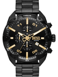 Dz4644 Spiked 49mm Sleek and powerful, Diesel's Spiked 49mm timepiece stands out with its black satin dial and polished link bracelet. It's equipped with chronograph counters for precise timekeeping and includes a date indication feature for enhanced practicality. Highlights - Stainless steel - Quartz movement - Baton dial - Arabic dial - Black - Chronograph counters - Round face - Screw-down crown - Stainless steel link bracelet - Clasp fastening - Central hours, minutes and seconds - Date indication - Water resistance up to 50m/5 atm - This item comes with a standard two-year warranty from the brand. Imported Composition Steel 100%