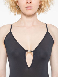 stretch-design bodysuit Highlights - Midnight blue - Plunging v-neck - Scoop back - Logo embellishment - Just a reminder that this piece must be tried on over your own garments. Imported Composition Polyamide 90%, Elastane 10% SIZE & FIT Model measurements Height 5 ft 9 in(1.75 m) Bust/Chest 34.64 in(88 cm) Hips 36.61 in(93 cm) Waist 26.37 in(67 cm) FittingInformation Designed for a close fit throughout The elasticated shoulders offer movement and a comfortable fit Made from a lightweight stretch fabric, this piece offers elasticity and flexibility when worn Washing instructions Hand Wash