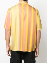 stripe-print short-sleeved shirt light orange/lemon yellow lyocell stripe print logo patch to the front classic collar front button fastening short sleeves straight hem Conscious: This item contains at least 50% low-impact materials, which are certified or widely recognised as having a lower environmental impact. Imported Composition Lyocell 100% Washing instructions Machine Wash