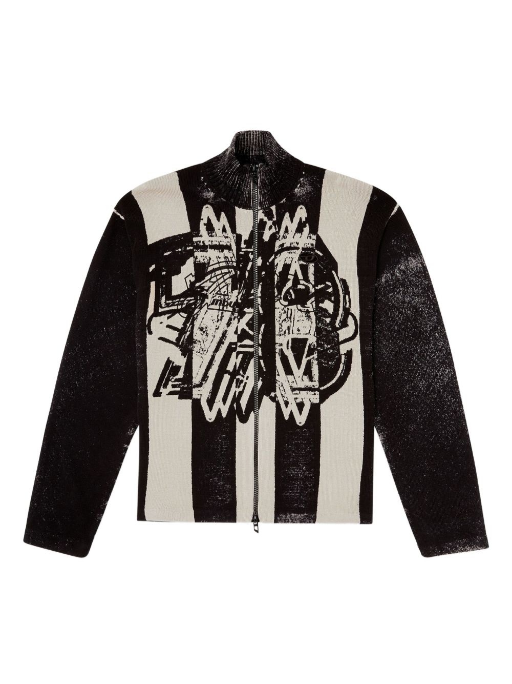striped zip-up bomber jacket Highlights - Black/white - Stripe detail - Long sleeves - Zip front fastening - High neck - Straight hem Imported Composition Cotton 100% Washing instructions Read Manufacturer Guidelines