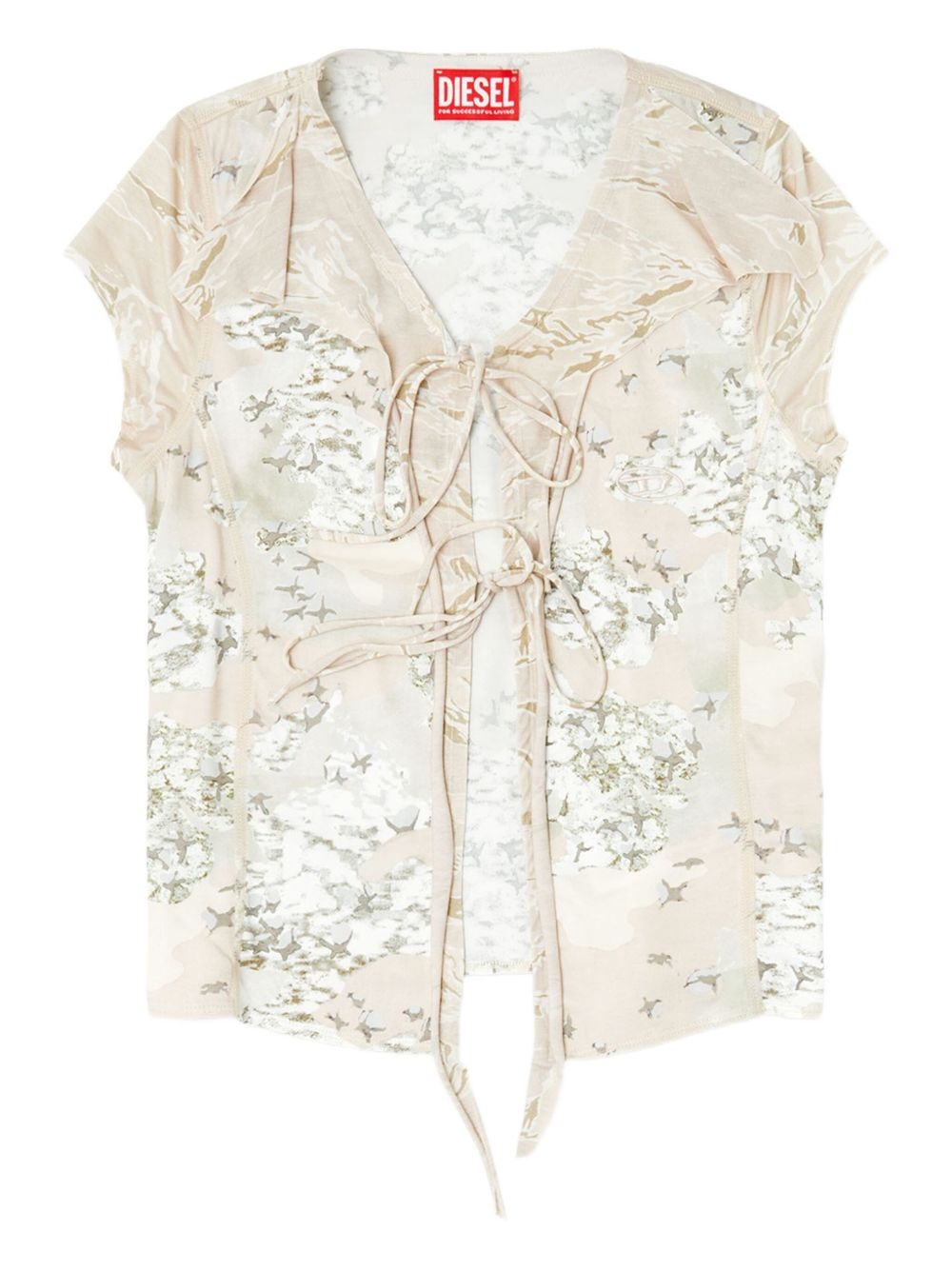 T-Afrymy lace-up floral top Highlights - Beige - Floral print - Lace-up front - Short sleeves - V-neck Imported Composition Lyocell 100%, Viscose 97%, Elastane 3% Washing instructions Read Manufacturer Guidelines