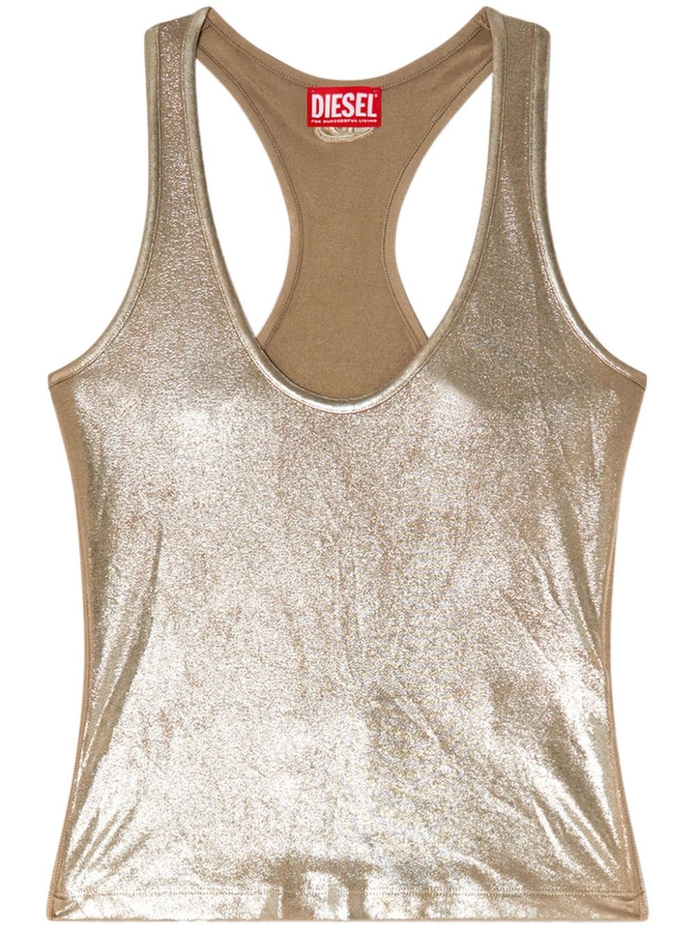T-Ama top Highlights - Gold-tone - Stretch-design - Metallic finish - Scoop neck - Sleeveless - Racerback - Straight hem Imported Composition Acetate 96%, Elastane 4%