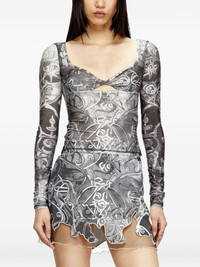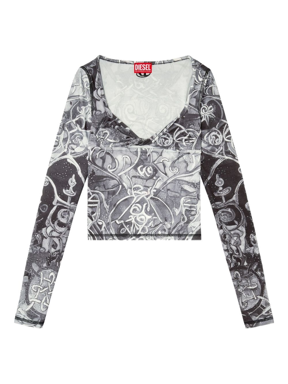 T-Antica T-shirt Highlights - Anthracite grey - All-over graphic print - Sweetheart neck - Twist detailing - Cut-out detailing Imported Composition Polyamide 82%, Elastane 18%