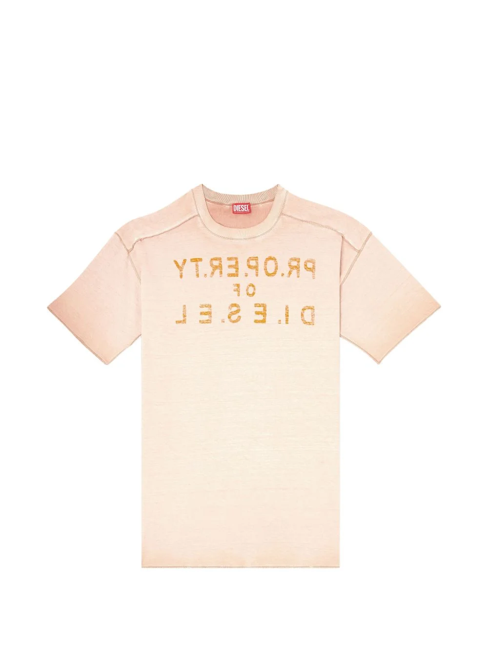 T-Look raw-trim T-shirt Highlights - Beige - Raw trim - Orange lettering - Short sleeves - Crew neck Imported Composition Organic Cotton 100% Washing instructions Machine Wash