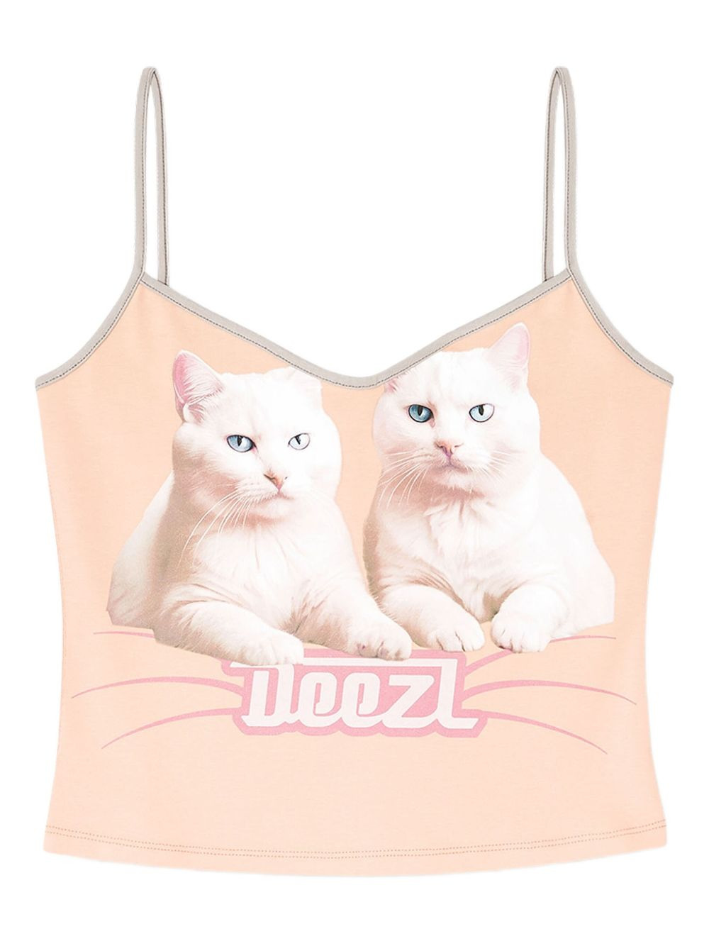 T-TOP-R2 Highlights - Pink - Spaghetti straps - Cat print - V-neck - Cotton blend Imported Composition Cotton 95%, Elastane 5% Washing instructions Read Manufacturer Guidelines