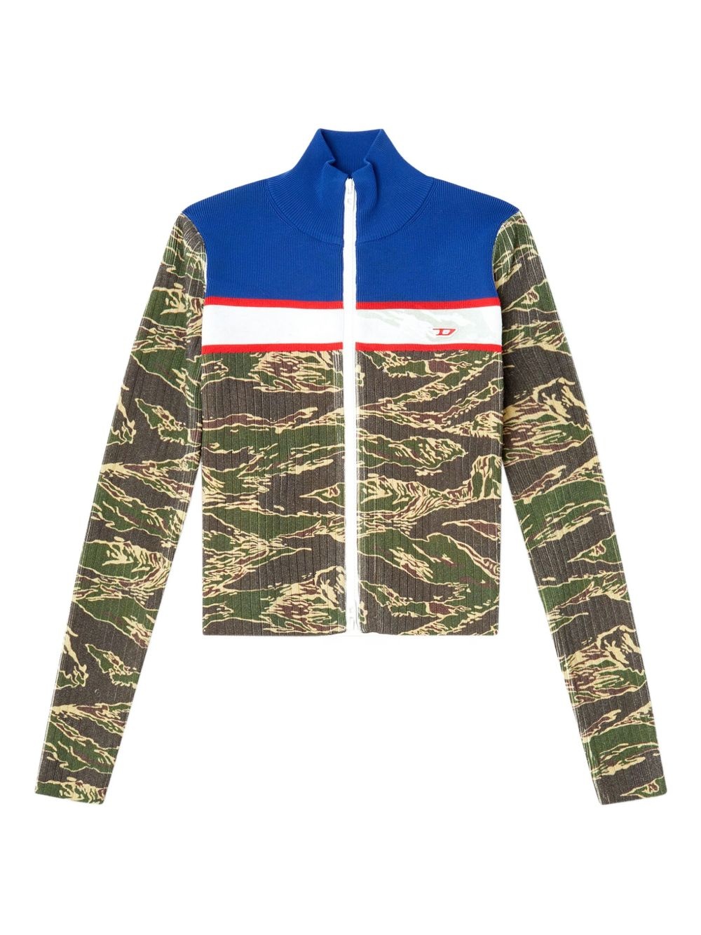 tiger-print ribbed sweater Highlights - Army green - Tiger print - Ribbed texture - Zip fastening - High neck - Long sleeves Imported Composition Viscose 83%, Polyester 17% Washing instructions Hand Wash