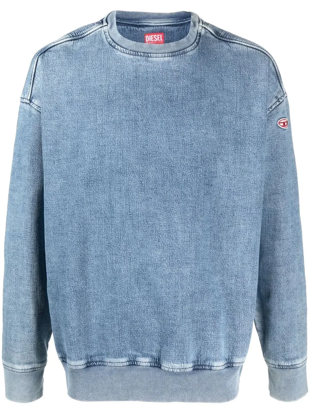 D-Krib washed-denim sweatshirt Highlights - Light blue - Stretch-cotton - Washed denim - Crew neck - Long sleeves - Ribbed edge - Straight hem Imported Composition Cotton 98%, Spandex/Elastane 2% SIZE & FIT Model measurements Height 6 ft 3 in(1.9 m) Bust/Chest 38.18 in(97 cm) Hips 37.79 in(96 cm) Waist 32.67 in(83 cm) FittingInformation This piece fits true to size. We recommend you get your regular size Cut for a loose fit Made with a mid-weight stretch fabric Washing instructions Machine Wash