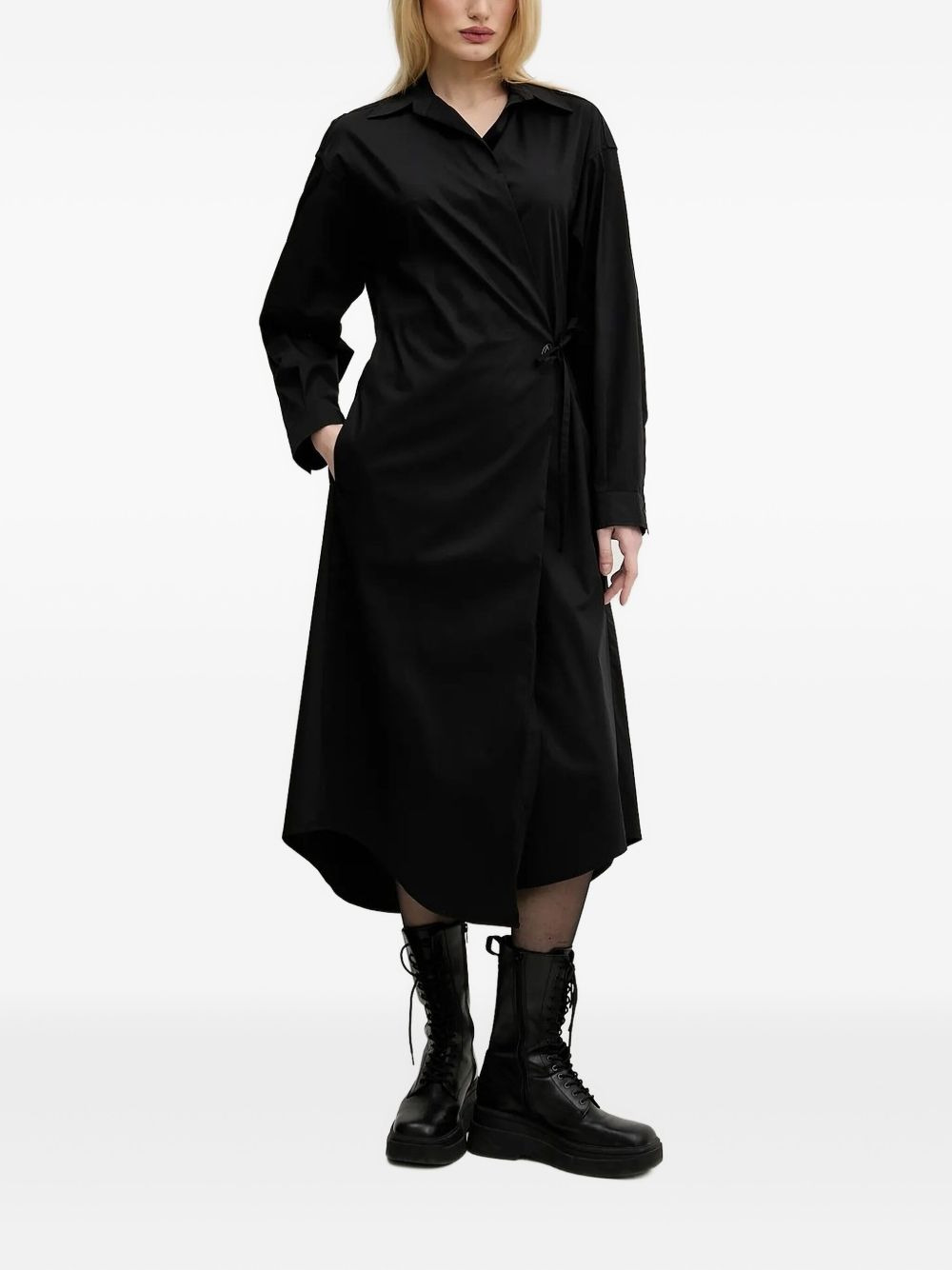 wraparound shirt dress Highlights - Black - Wraparound style - Tie fastening - Long sleeves - Wingtip collar - Asymmetrical hemline Imported Composition Cotton 67%, Polyamide 30%, Elastane 3% Washing instructions Read Manufacturer Guidelines