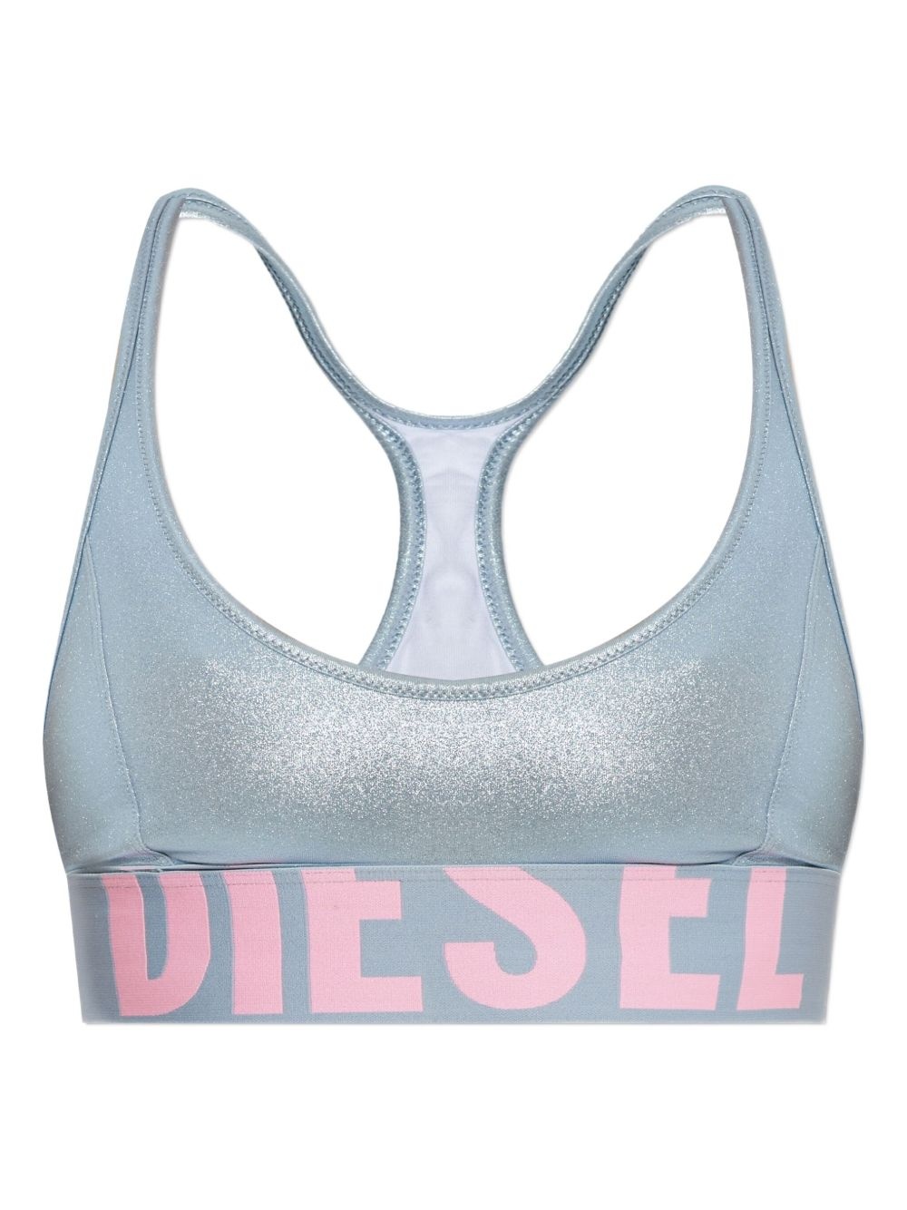 Zaira-D-Pop metallic racerback bikini top Highlights - Light blue - Metallic finish - Elasticated logo band - Racerback design - Be mindful to try on swimwear over your own garments. Imported Composition Polyamide 78%, Elastane 22%