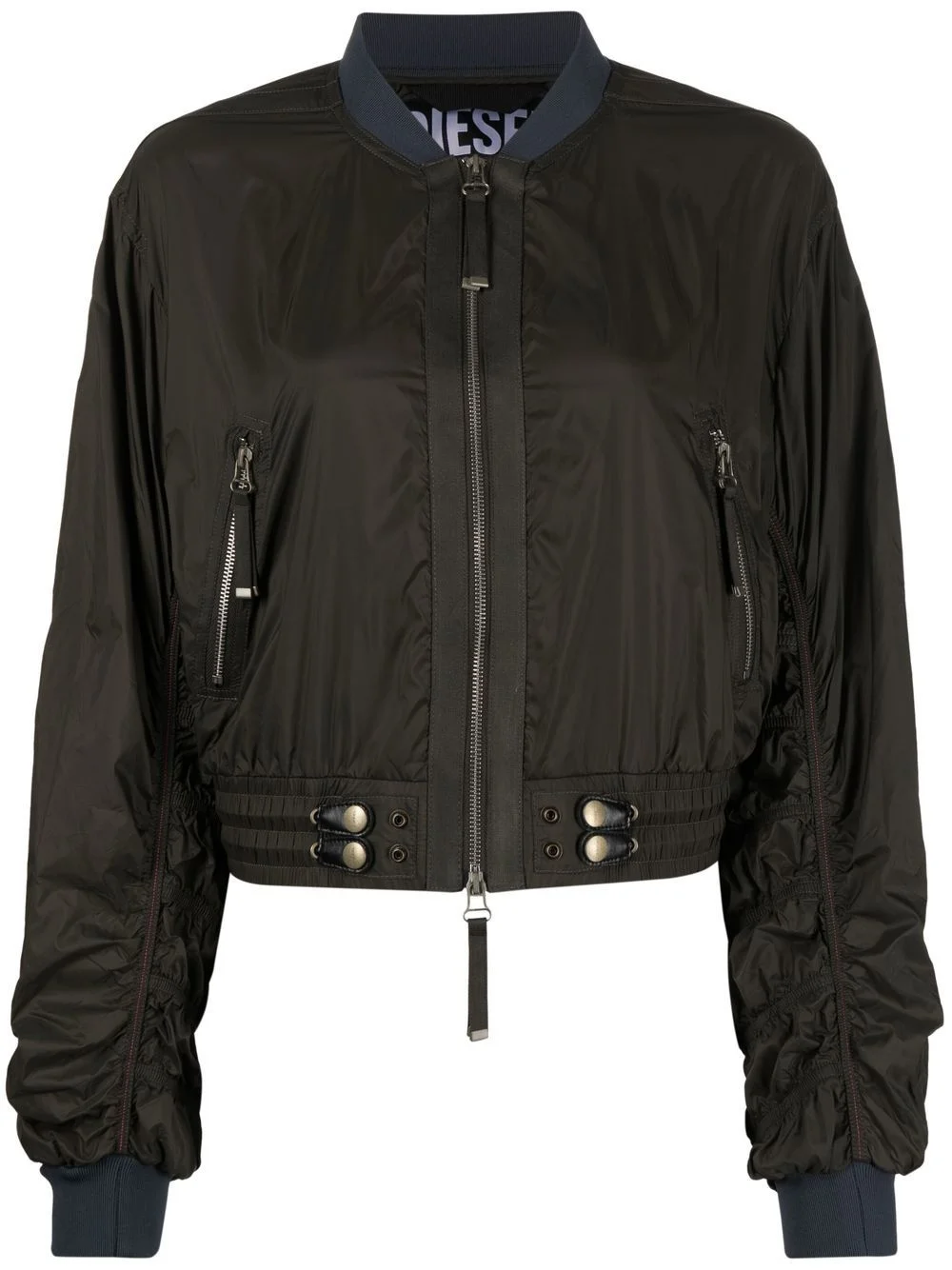 G-Noak zip-up bomber jacket Diesel demonstrates a blend of contemporary and classic street fashion aesthetics with this bomber jacket for SS23. The classic silhouette is accented by a contrasting trim in a muted blue tone while the two-way zip fastening and pockets to the front add a utilitarian appeal. Highlights - Brown - Contrasting collar - Front zip fastening pockets - Front two-way zip fastening - Long sleeves - Straight hem Imported Composition Nylon 100% SIZE & FIT Model measurements Height 5 ft 10 in(1.77 m) Bust/Chest 32.28 in(82 cm) Hips 35.03 in(89 cm) Waist 25.19 in(64 cm) FittingInformation This piece fits true to size. We recommend you get your regular size Cut for a loose fit Made with a mid-weight stretch fabric Washing instructions Machine Wash