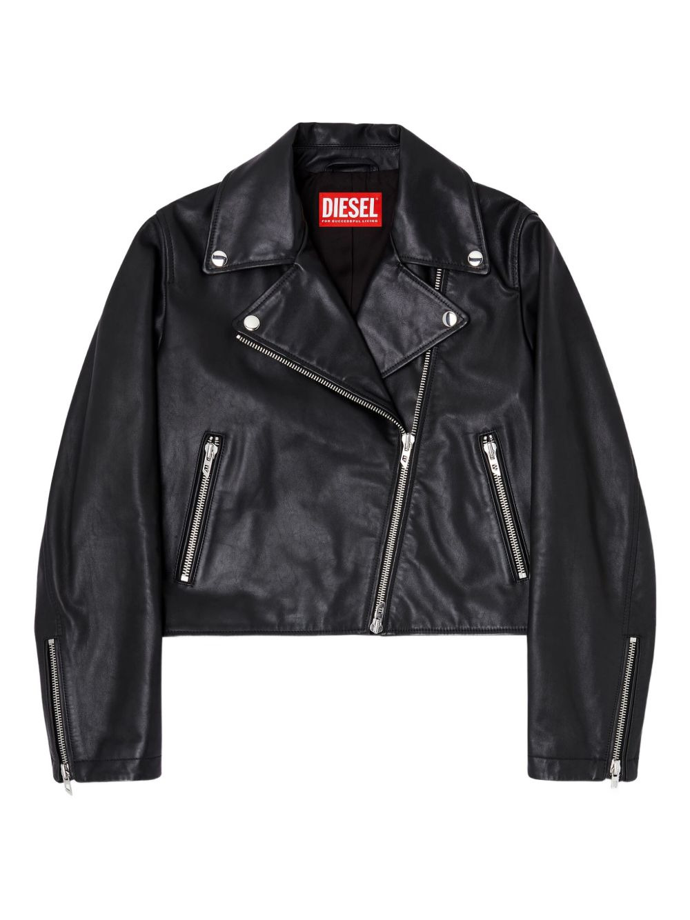 zip-up leather jacket Highlights - Black - Zip fastening - Snap-fastened lapels - Zipped cuffs - Embossed logo - Leather Imported Composition Bovine Leather (top grain) 100% Washing instructions Read Manufacturer Guidelines