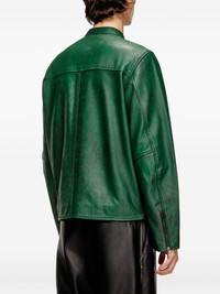 zip-up leather jacket Highlights - Green - Front zip fastening - Long sleeves - Logo print at the chest - Side zip-fastening pockets Imported Composition Lamb Skin 100% Washing instructions Read Manufacturer Guidelines