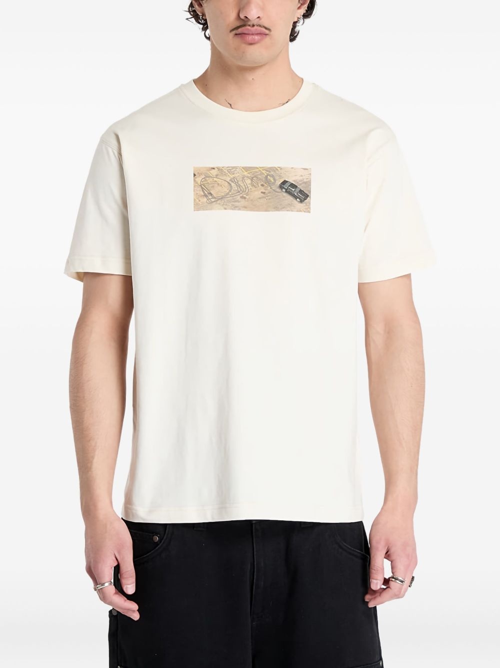 graphic-print T-shirt Highlights - Beige - Short sleeves - Crew neck - Rectangular graphic print - Image print - Boxy fit Imported Composition Cotton 100% Washing instructions Read Manufacturer Guidelines