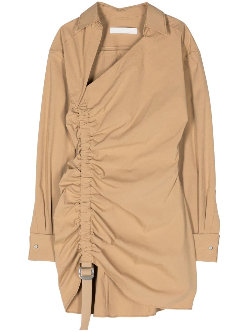 asymmetric gathered mini dress Highlights - Camel brown - Cotton blend - Poplin texture - Ruched detailing - Decorative buckle detail - Spread collar - Asymmetric neck - Fitted waistline - Concealed side zip fastening - Long sleeves - French cuffs - Thigh-length - Asymmetric hem - Unlined Made in France Composition Cotton 60%, Polyamide 35%, Elastane 5% SIZE & FIT Model measurements Height 5 ft 10 in(1.78 m) Bust/Chest 33.46 in(85 cm) Hips 36.22 in(92 cm) Waist 23.22 in(59 cm) FittingInformation Designed for a slim fit that sits just away from the body offering a close yet comfortable fit Made from a midweight stretch fabric, this piece offers elasticity and flexibility when worn This piece fits true to size – take your usual size Washing instructions Dry Clean Only