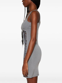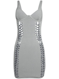 braid-embellished mini dress Highlights - Grey - Stretch-design - Bustier-style neckline - Braid detailing - Sleeveless - Bodycon design - Straight hem - Thigh-length Imported Composition Viscose 57%, Nylon 23%, Polyester 16%, Elastane 4%