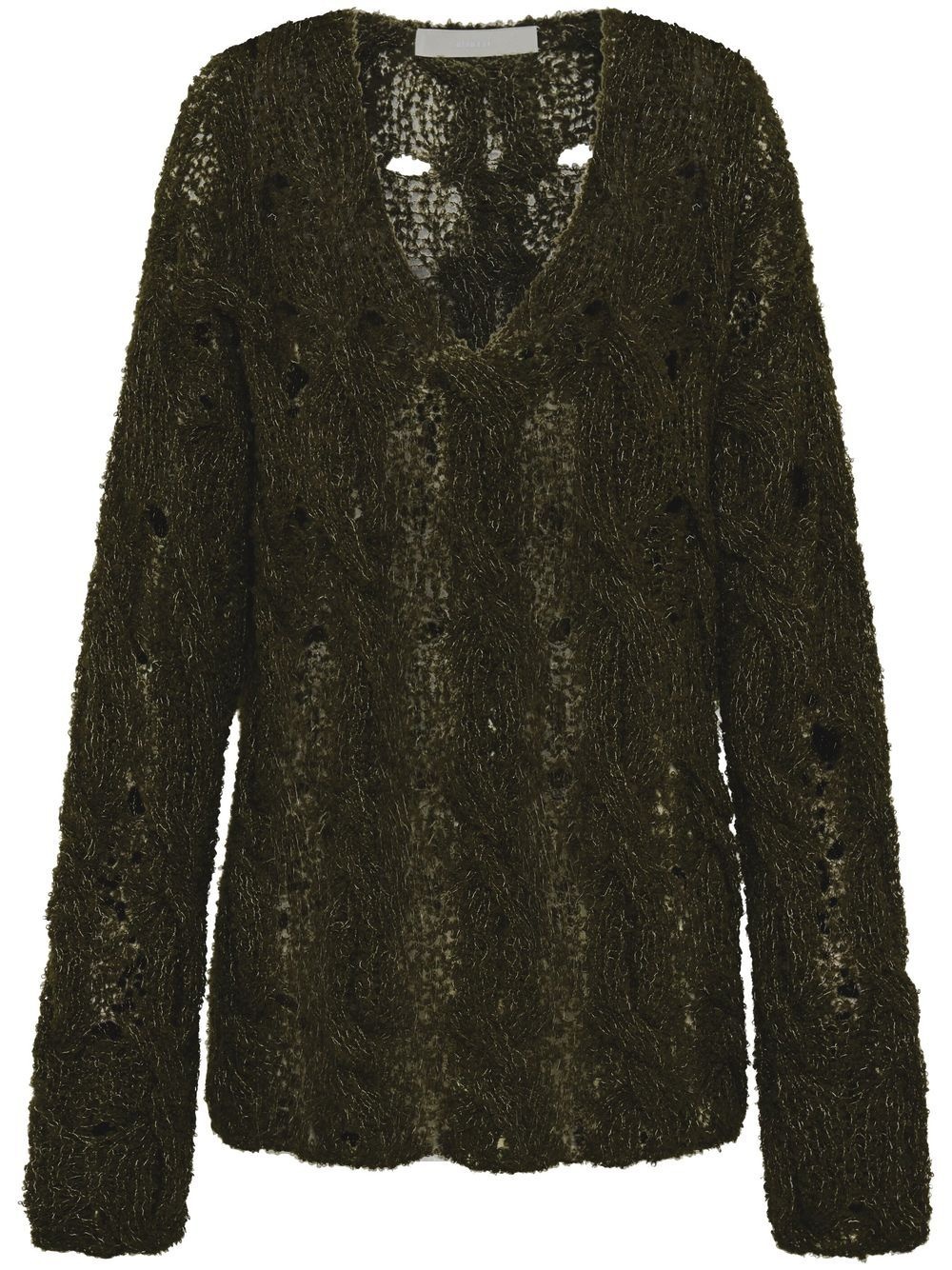 cable-knit boucle jumper forest green alpaca wool cable knit round neck extra-long sleeves straight hem Imported Composition Alpaca 89%, Polyamide 11% SIZE & FIT Measurement BACK RISE 18.5 in(47 cm) LENGTH 23.14 in(58.8 cm) Shoulder Width 21.1 in(53.6 cm) SLEEVE LENGTH 20 in(50.8 cm) Washing instructions Dry Clean Only