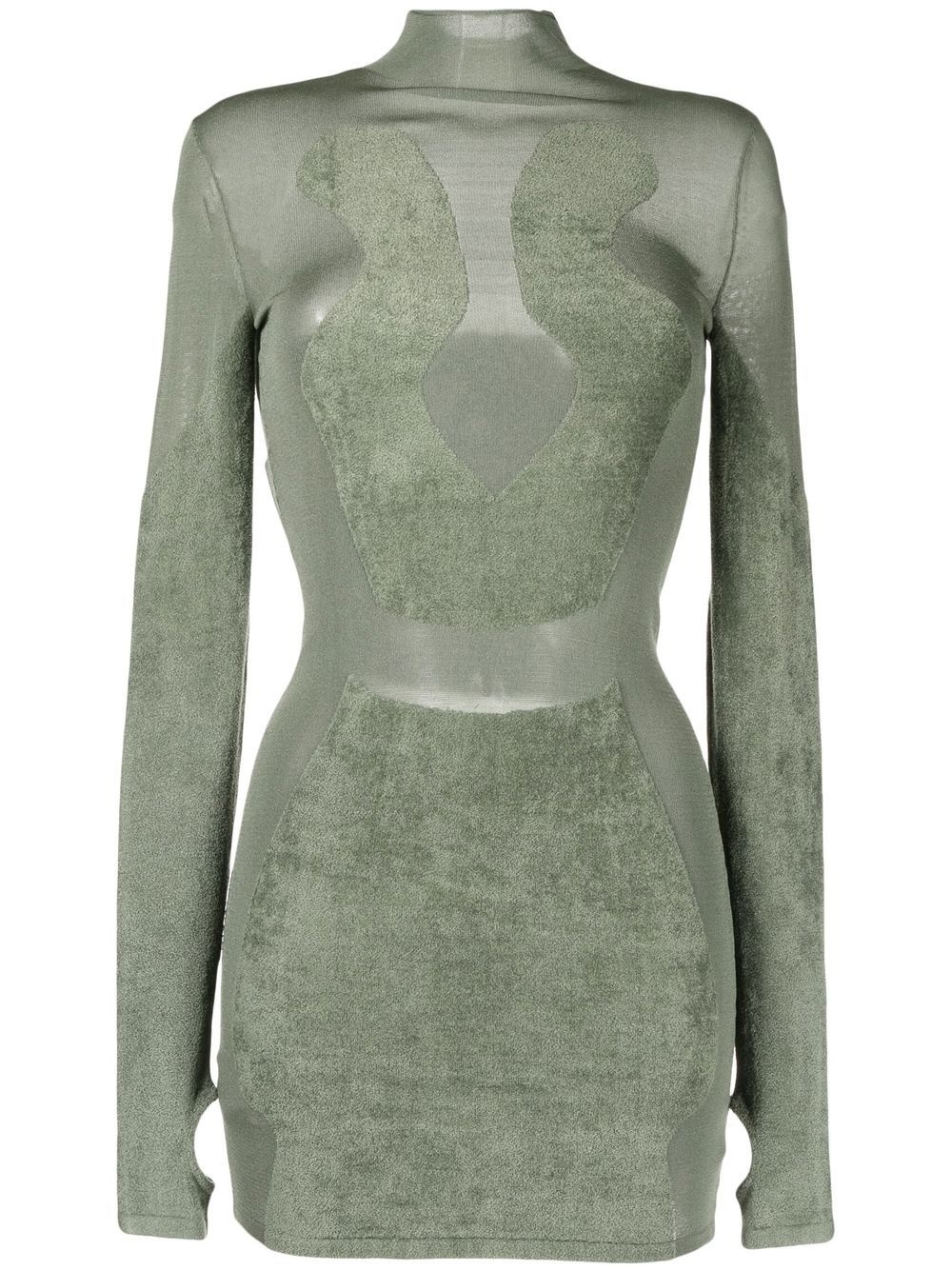 Chenille intarsia mini dress Highlights - Light green - Fine knit - Semi-sheer construction - High neck - Long sleeves - Fitted waistline Imported Composition Body: Viscose 52%, Nylon 45%, Elastane 3% SIZE & FIT Model measurements Height 5 ft 11 in(1.8 m) Bust/Chest 28.34 in(72 cm) Hips 35.43 in(90 cm) Waist 23.62 in(60 cm) FittingInformation This piece fits true to size. We recommend you get your regular size Cut for a close fit Made with a mid-weight stretch fabric Washing instructions Dry Clean Only
