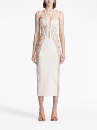 Coral crochet dress cream white cotton blend mesh panelling halterneck spaghetti straps cut-out detailing short rear zip fastening mid-calf length Imported Composition Cotton 64%, Nylon 36% SIZE & FIT Measurement BUST 12.59 in(32 cm) HIPS 16.73 in(42.5 cm) LENGTH 42.59 in(108.2 cm) WAIST 12.2 in(31 cm) Washing instructions Dry Clean Only