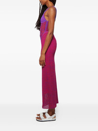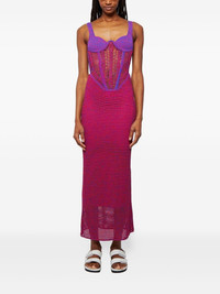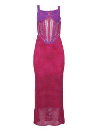 corset-effect dress Highlights - Fuchsia - Purple bodice - Corset detailing - Open knit - Maxi length Imported Composition Cotton 100%, Nylon 100%, Elastane 100% Washing instructions Read Manufacturer Guidelines