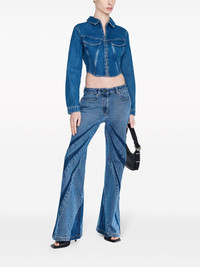 darted bootcut jeans Highlights - Blue - Organic cotton - Denim - Dart detailing - Belt loops - Logo patch to the rear - Classic five pockets Imported Composition Organic Cotton 100% SIZE & FIT Measurement FRONT RISE 10.43 in(26.5 cm) WAIST 28.74 in(73 cm) HIPS 37 in(94 cm) Washing instructions Read Manufacturer Guidelines
