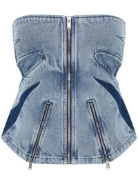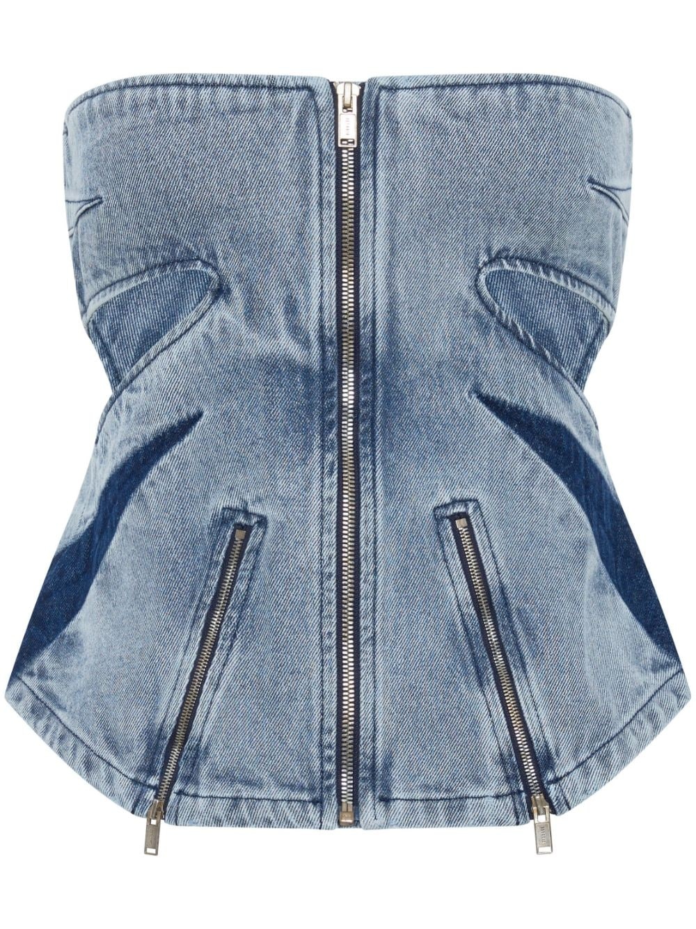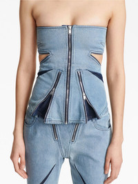 darted denim corset Highlights - Indigo blue - Cotton - Mid wash denim - Corset style - Dart detailing - Zip details - Cut-out detailing - Strapless - Front zip fastening - Curved hem Imported Composition Cotton 100%
