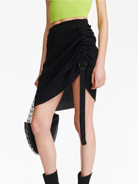 gathered ribbed-knit miniskirt Highlights - Black - Cotton blend - Ribbed knit - Gathered detailing - Tape detailing - Tonal hardware - Elasticated waistband - Pull-on style - Asymmetric hem - Above-knee length Imported Composition Body: Cotton 69%, Nylon 31% Washing instructions Dry Clean Only