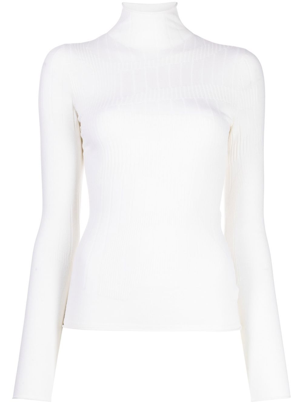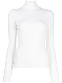 intarsia-knit ribbed jumper off-white merino-blend intarsia knit ribbed detailing roll neck long sleeves straight hem Imported Composition Merino 83%, Nylon 8%, Polyester 7%, Elastane 2% SIZE & FIT Model measurements Height 5 ft 10 in(1.77 m) Bust/Chest 31.49 in(80 cm) Hips 35.43 in(90 cm) Waist 25.19 in(64 cm) FittingInformation This piece is unisex. Please take care when selecting your size Cut for a slim fit for both men and women Made with a mid-weight stretch fabric