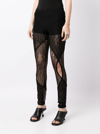 lace high-waisted leggings DION LEE is a clothing brand from Sydney known for blending modern aesthetics with traditional tailoring. A fine example of its signature style, are these black high-waisted leggings, cut from interlocking layers of lace. Made in Italy Composition Outer: Polyamide 79%, Elastane 21% Lining: Polyester 92%, Elastane 8% SIZE & FIT Model measurements Height 5 ft 10 in(1.78 m) Bust/Chest 33.46 in(85 cm) Hips 35.43 in(90 cm) Waist 24.4 in(62 cm) FittingInformation This piece fits true to size. We recommend you get your regular size Cut for a close fit Made with a lightweight stretch fabric Washing instructions Dry Clean Only