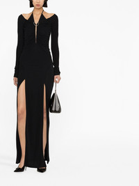 Mobious slit gown Dion Lee presents the Mobious gown for SS23 in a sleek black hue, cut in a ruched halterneck design. The dress is finished with front slits for a sultry feel. Imported Composition Viscose 72%, Polyester 28% SIZE & FIT Model measurements Height 5 ft 10 in(1.78 m) Bust/Chest 29.92 in(76 cm) Hips 34.64 in(88 cm) Waist 23.62 in(60 cm) Measurement BUST 27.55 in(70 cm) HIPS 29.52 in(75 cm) LENGTH 58.42 in(148.4 cm) SLEEVE LENGTH 27.32 in(69.4 cm) WAIST 23.62 in(60 cm) FittingInformation This piece fits true to size. We recommend you get your regular size Designed for a close fit at the bust, waist and hips Made with a mid-weight fabric Washing instructions Dry Clean Only