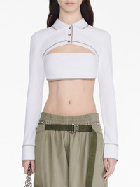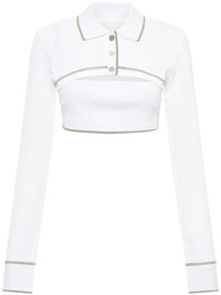 polo-collar cotton crop top Highlights - Ivory white - Cotton - Contrast stitching - Cut-out detailing - Polo collar - Front button placket - Long sleeves - Straight hem - Cropped Imported Composition Cotton 100% Washing instructions Dry Clean Only