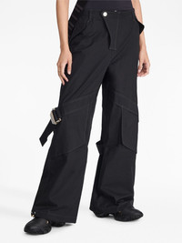straight-leg organic cotton blend trousers Highlights - Black - Organic cotton blend - Belt loops - Contrast stitching - Decorative buckle detail - Straight leg - Two side flap pockets - Two front cargo pockets Imported Composition Organic Cotton 75%, Recycled Nylon 25% Washing instructions Dry Clean Only