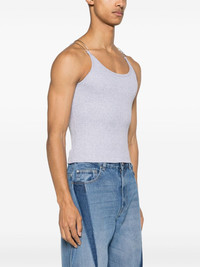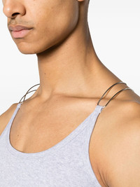 Wire Strap organic cotton tank top Highlights - Grey - Organic cotton - Ribbed knit - Melange effect - Scoop neck - Two metallic shoulder straps - Straight hem Imported Composition Organic Cotton 100% SIZE & FIT Model measurements Height 6 ft 2 in(1.87 m) Bust/Chest 38.18 in(97 cm) Hips 36.61 in(93 cm) Waist 29.13 in(74 cm) Measurement LENGTH 21.65 in(55 cm) BUST 31.49 in(80 cm) Washing instructions Dry Clean Only
