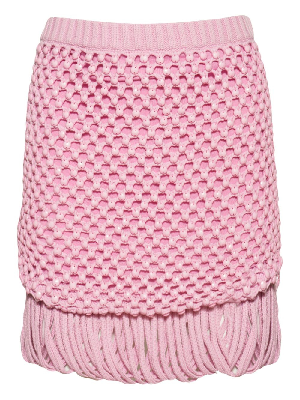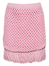 fringe knitted mini skirt Highlights - Orchid pink - Open knit - Fringe trim - Mini length Imported Composition Fabric 100% Washing instructions Read Manufacturer Guidelines