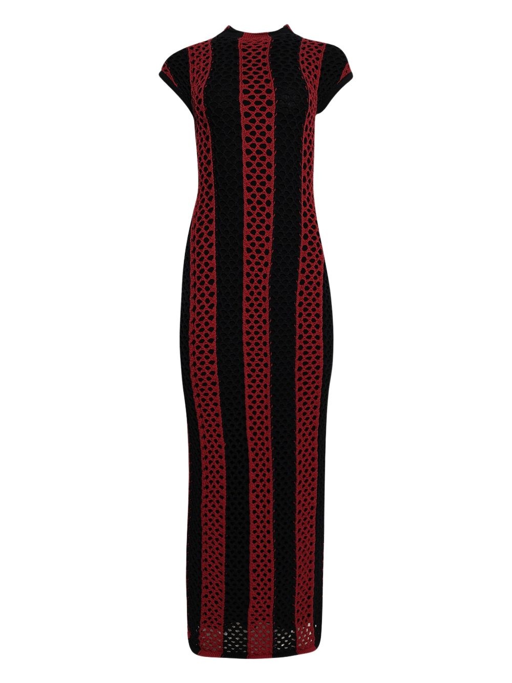 Neale cut-out detail maxi dress Highlights - Black and red - Short cap sleeves - High neck - All-over cut-out pattern - Fitted design - Floor-length silhouette Imported Composition Cotton 76%, Nylon 24% Washing instructions Read Manufacturer Guidelines
