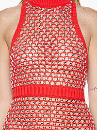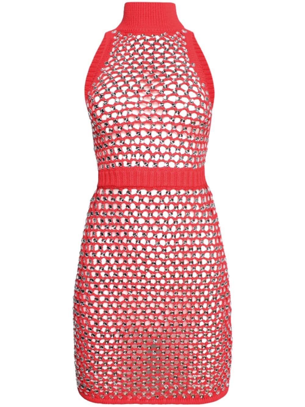 Sly open-knit minidress Highlights - Bright red - Cotton blend - Open knit - Cut-out detailing - Mock neck - Sleeveless - Thigh-length - Straight hem Imported Composition Cotton 75%, Nylon 25%