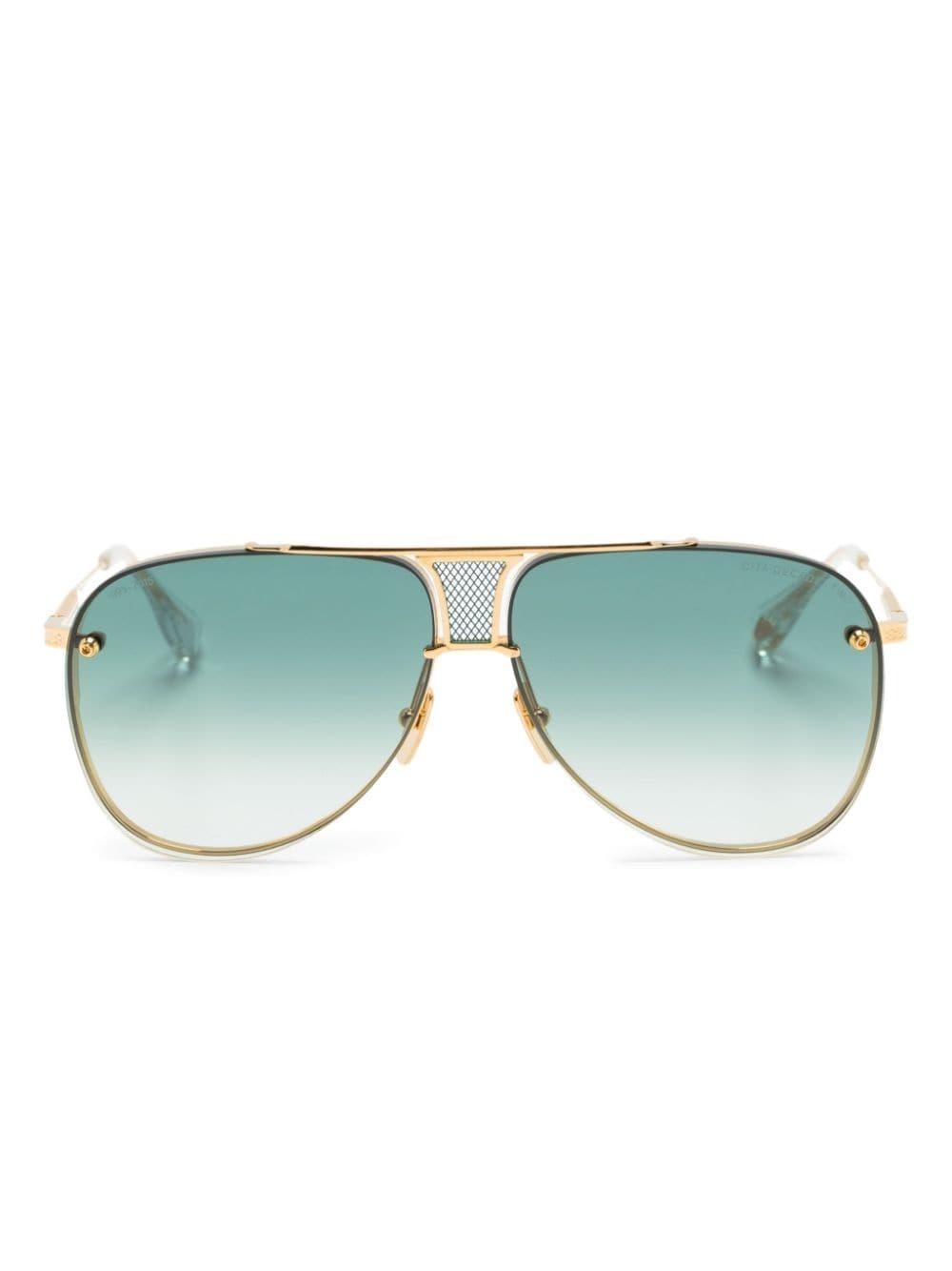 Decade pilot-frame sunglasses Highlights - Gold-tone - Metal - Pilot frame - Gradient lenses - Nose pads - Straight arms - Curved tips - These glasses come with a protective case. Imported Composition Titanium 80%, Acetate 20% SIZE & FIT Measurement Arm Length 5.31 in(13.5 cm) Bridge Width 0.7 in(1.8 cm) Lens Diameter 2.44 in(6.2 cm) Total Width 5.51 in(14 cm)