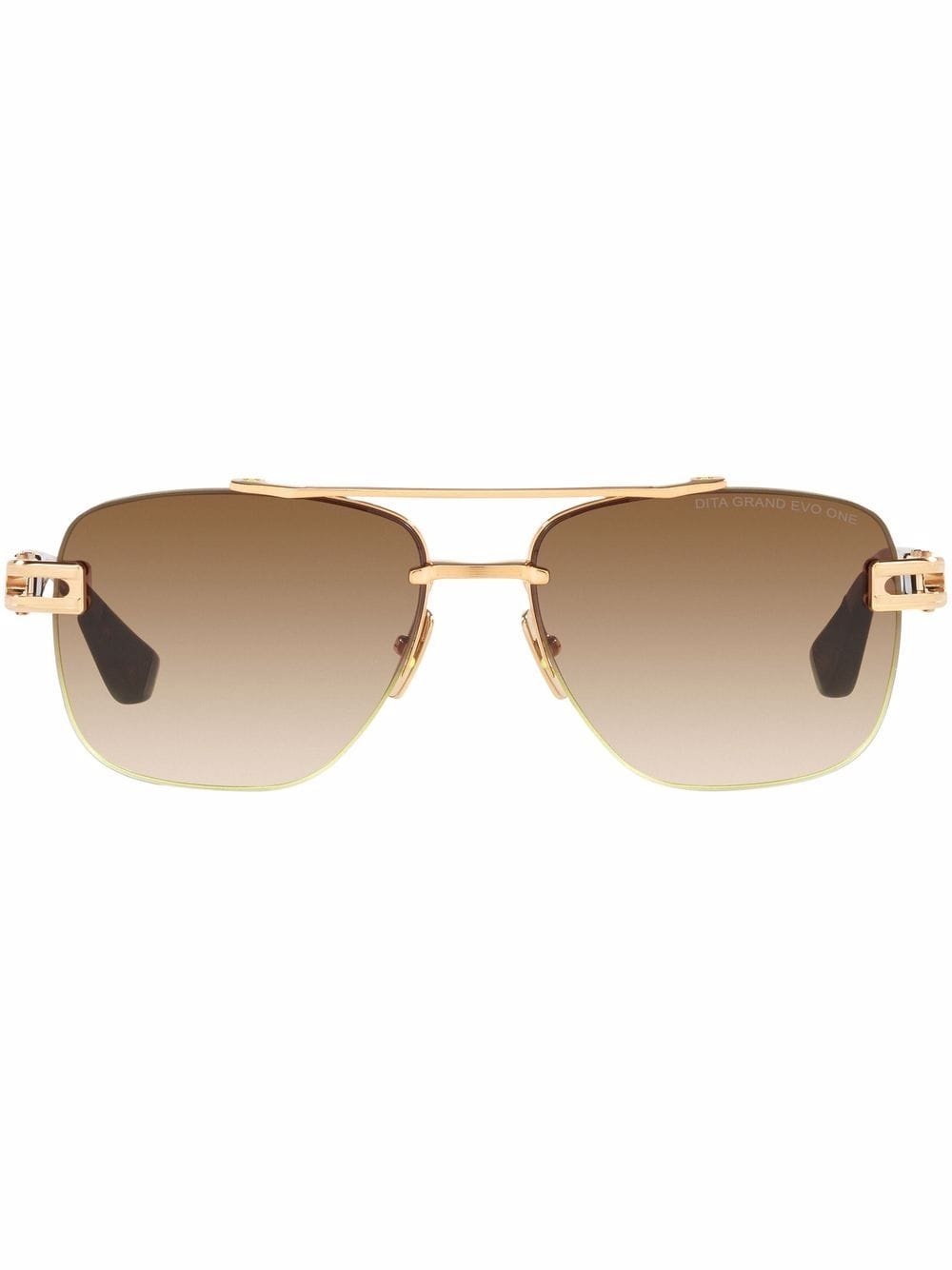 Grand-Evo One sunglasses gold-tone titanium pilot frame brown gradient lenses nose pads tortoiseshell-effect curved tips UV-protective lenses All glasses from FARFETCH are sold as non-prescription frames. These glasses come with a protective case. Made in United States Composition Titanium 100% SIZE & FIT Measurement Bridge Width 0.66 in(1.7 cm) Lens Diameter 2.12 in(5.4 cm)