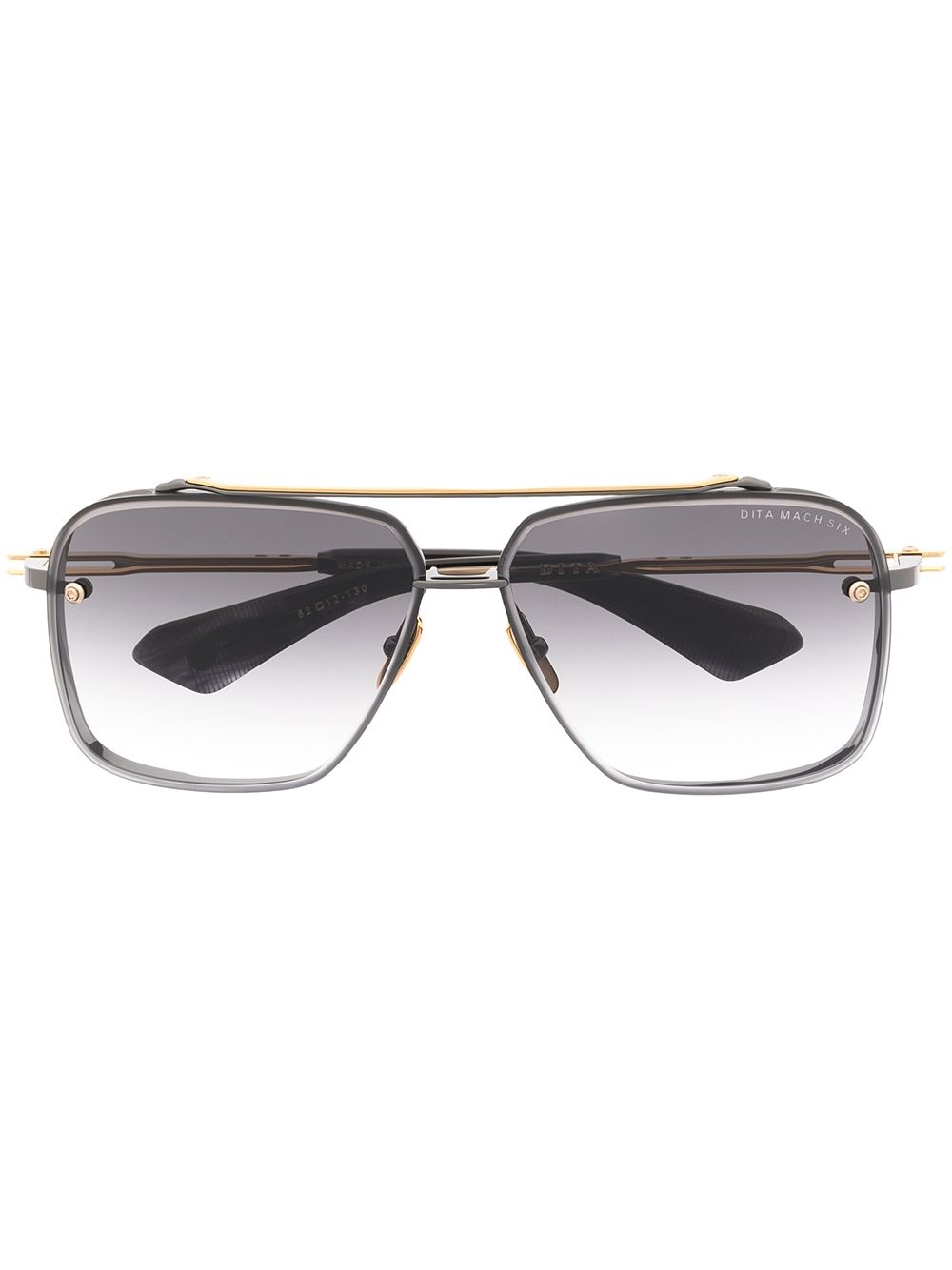 Mach 6 square-frame sunglasses grey/gold-tone metal square frame gradient lenses double bridge nose pads gold-tone hardware curved tips We know you'll look after them, but these glasses come with protection, just in case. Imported Composition Metal 100% SIZE & FIT Measurement Arm Length 5.11 in(13 cm) Bridge Width 0.47 in(1.2 cm) Lens Diameter 2.44 in(6.2 cm) Total Width 5.9 in(15 cm)