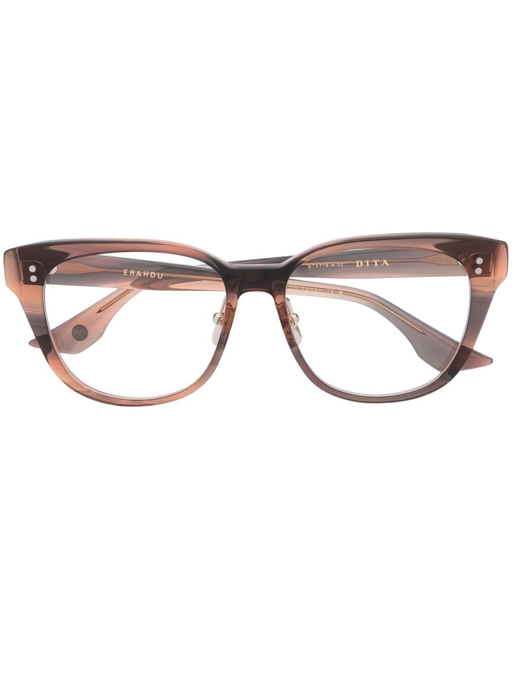 monochromatic-ombre-effect glasses brown ombre effect engraved logo wayfarer frame clear lenses straight arms curved tips Imported Composition Acetate 100% SIZE & FIT Measurement Arm Length 5.74 in(14.6 cm) Bridge Width 0.62 in(1.6 cm) Lens Diameter 2.2 in(5.6 cm) Total Width 5.78 in(14.7 cm)