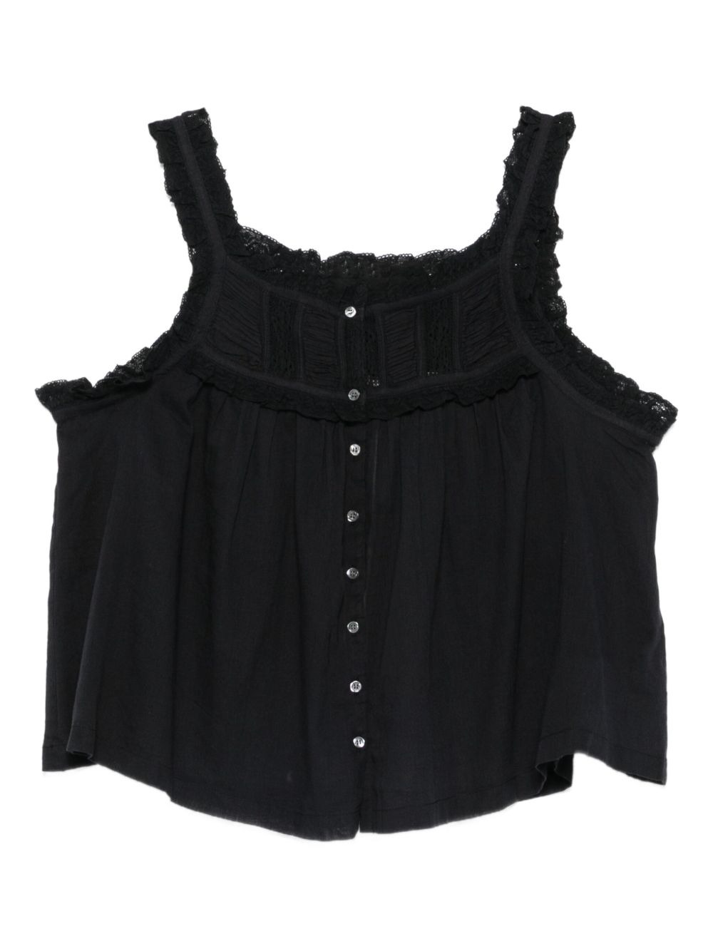 Fidella cropped blouse Highlights - Black - Front button fastening - Sleeveless Imported Composition Organic Cotton 100% SIZE & FIT Model measurements Height 5 ft 9 in(1.75 m) Bust/Chest 34.64 in(88 cm) Hips 36.61 in(93 cm) Waist 26.37 in(67 cm) Washing instructions Hand Wash