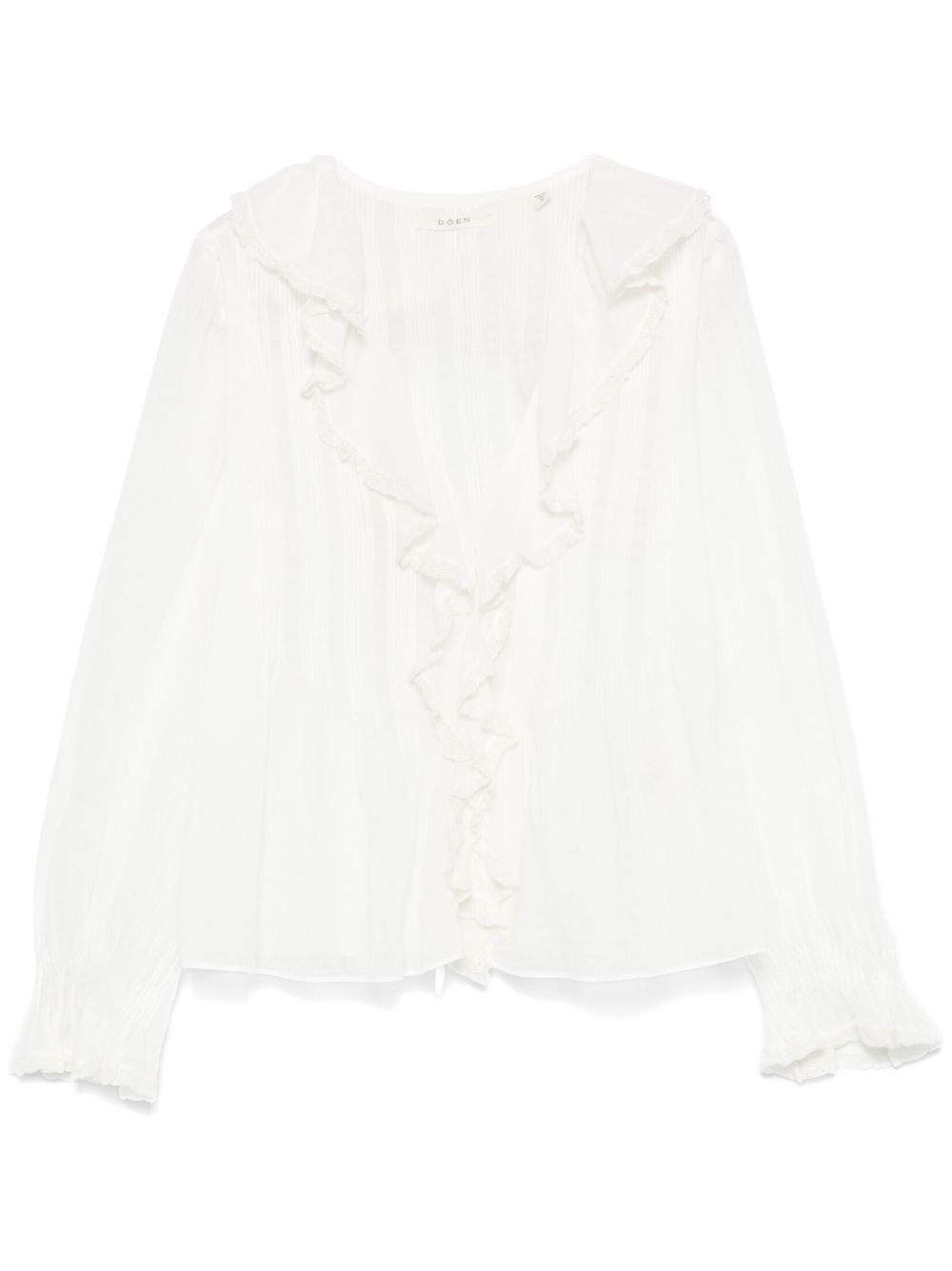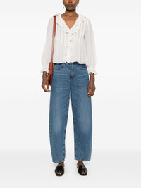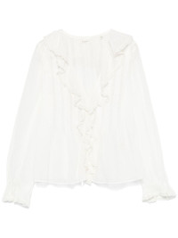 Hardy blouse Highlights - White - Organic cotton - Semi-sheer construction - Concealed front press-stud fastening - Ruffled trim - Plunging v-neck - Long sleeves - Flared cuffs - Lace trim - Unlined - Curved hem Imported Composition Organic Cotton 100% SIZE & FIT Model measurements Height 5 ft 11 in(1.8 m) Bust/Chest 31.49 in(80 cm) Hips 36.61 in(93 cm) Waist 24.4 in(62 cm) FittingInformation Designed to be unstructured, offering a loose fit throughout Made from a midweight non-stretch fabric