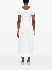Leanne midi dress Highlights - White - Organic cotton - Poplin texture - Frilled neckline - Short puff sleeves - Ruffle cuffs - Smocked waist - A-line skirt - Straight hem - Mid-length Imported Composition Organic Cotton 100% SIZE & FIT Model measurements Height 5 ft 10 in(1.78 m) Bust/Chest 31.49 in(80 cm) Hips 37 in(94 cm) Waist 23.62 in(60 cm) FittingInformation Designed to be unstructured, offering a loose fit throughout The elasticated waist allows for a comfortable fit Made from a lightweight non-stretch fabric Washing instructions Hand Wash