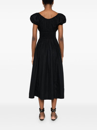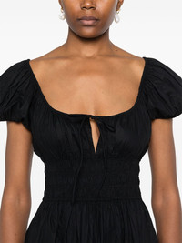 Quinn midi dress Highlights - Black - Organic cotton - Poplin texture - Ruched detailing - Scoop neck - Short puff sleeves - Elasticated cuffs - Front tie fastening - Smocked panel - A-line skirt - Unlined - Straight hem - Mid-length Imported Composition Organic Cotton 100% SIZE & FIT Model measurements Height 5 ft 11 in(1.8 m) Bust/Chest 31.49 in(80 cm) Hips 36.61 in(93 cm) Waist 24.4 in(62 cm) FittingInformation Designed for a close fit at the chest and waist with a loose fit at the hip The elasticated waist allows for a comfortable fit Made from a midweight non-stretch fabric