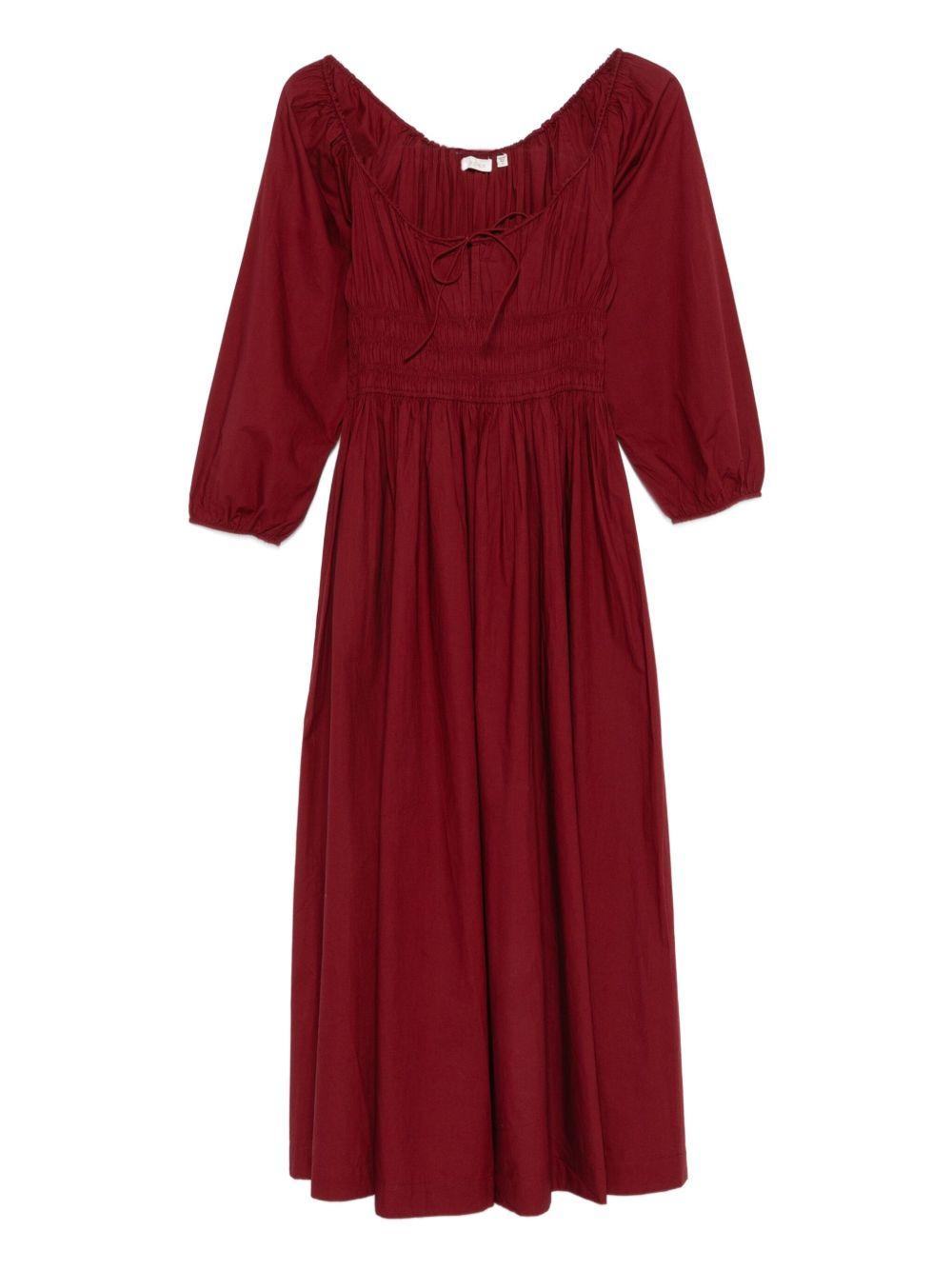 Quintessa puff-sleeve smocked dress Highlights - Burgundy - Smocked bodice - Puff sleeves - Scoop neck - Drawstring neckline - Midi length Imported Composition Organic Cotton 100% SIZE & FIT Model measurements Height 5 ft 9 in(1.75 m) Bust/Chest 34.64 in(88 cm) Hips 36.61 in(93 cm) Waist 26.37 in(67 cm) Washing instructions Read Manufacturer Guidelines