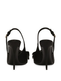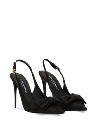 105mm bow-detailing silngback pumps Highlights - Black - Bow detailing Made in Italy Composition Outer: Viscose 67%, Silk 32%, Goat Skin 1% Lining: Goat Skin 80%, Viscose 14%, ENKA® Viscose 6% Sole: Calf Leather 100% SIZE & FIT Measurement HEEL 4.13 in(10.5 cm)