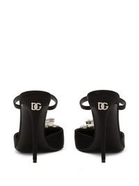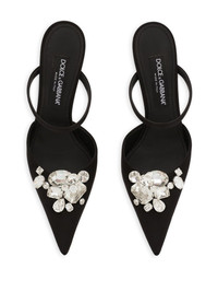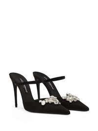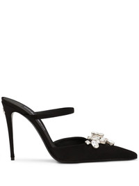 105mm crystal-embellished mules Highlights - Black - Crystal embellishment - Silver-tone logo plaque - Pointed toe - Slip-on style - Ankle strap - Branded leather insole - 105mm high heel Made in Italy Composition Silk 100%