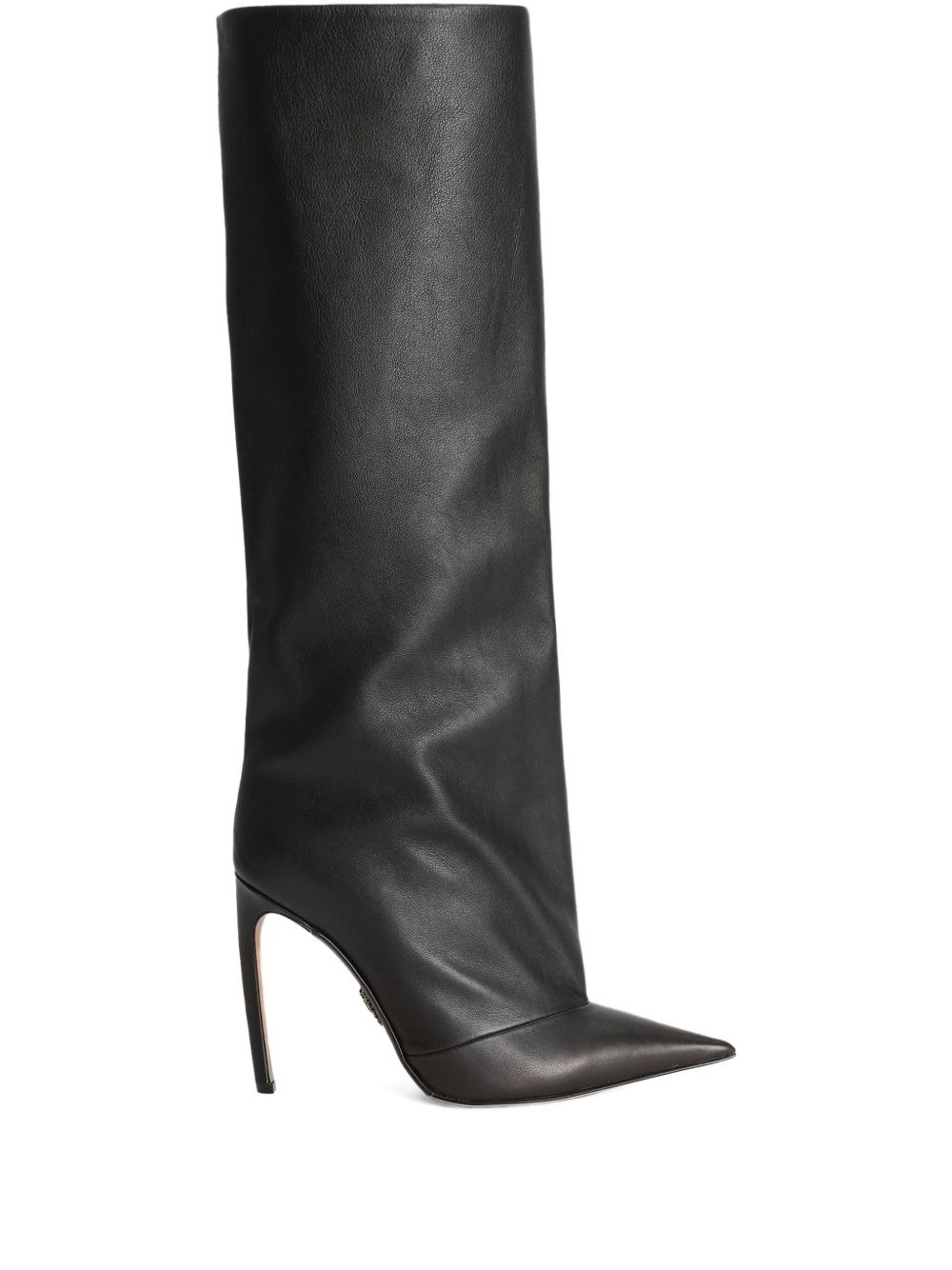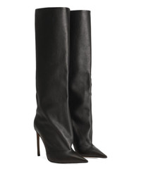 105mm Devotion knee-high pointed-toe boots Highlights - Black - Stiletto heel - Over-the-knee shaft - Pointed toe Made in Italy Composition Outer: CALFSKIN 71%, Goat Skin 25%, Lambskin 4% Lining: Calf Leather 100% Sole: Calf Leather 100% SIZE & FIT Measurement HEEL 4.13 in(10.5 cm)