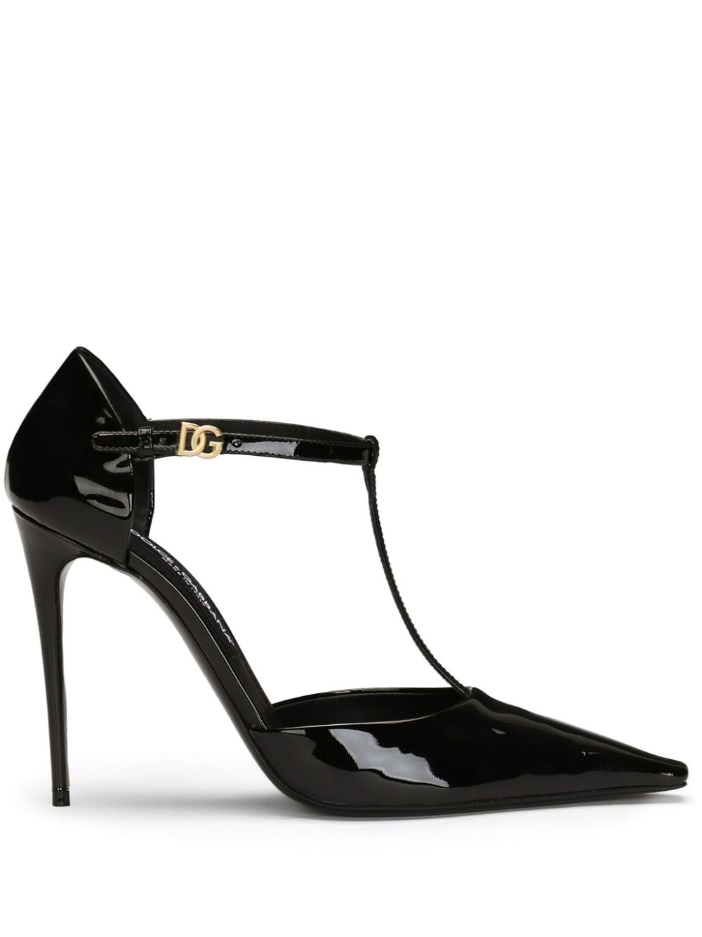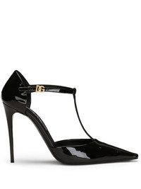 105mm DG-plaque pumps Highlights - Black - Calf leather - Patent finish - Buckle-fastening ankle strap - High stiletto heel - Gold-tone logo plaque - Pointed toe - Branded leather insole - Leather sole Made in Italy Composition Lining: Goat Skin 76%, CALFSKIN 24% Sole: Leather 100% Outer: Patent Calf Leather 100% SIZE & FIT Measurement HEEL 4.13 in(10.5 cm)